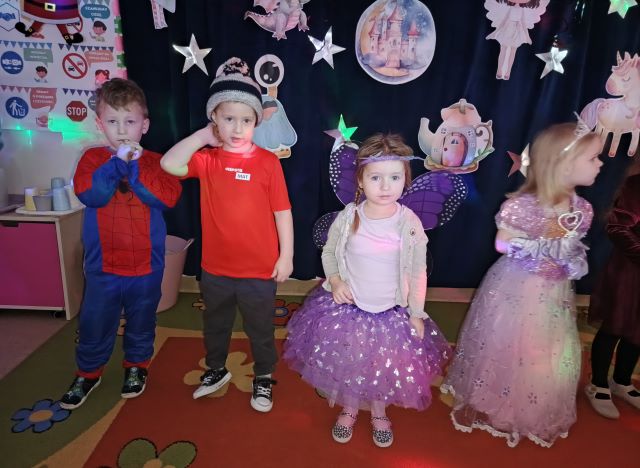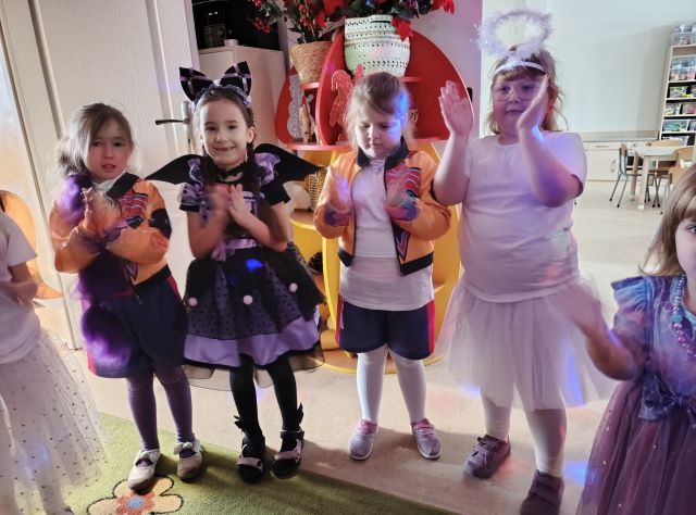 Przedszkolaki przybyły w przepięknych, pomysłowych przebraniach. Wśród uczestników balu można było spotkać księżniczki, superbohaterów, zwierzątka, wróżki, piratów oraz wiele innych bajkowych postaci. Każdy strój wzbudzał zachwyt i wywoływał uśmiech na twarzach dzieci oraz nauczycieli.
