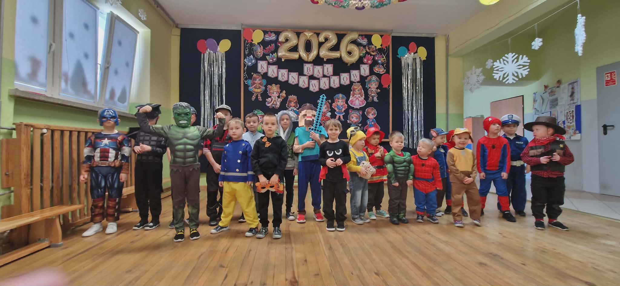 W naszym przedszkolu odbył się długo wyczekiwany Bal Karnawałowy, który dostarczył dzieciom mnóstwo radości, uśmiechu i niezapomnianych wrażeń. Tego dnia przedszkolne sale zamieniły się w prawdziwą krainę zabawy, muzyki i tańca.