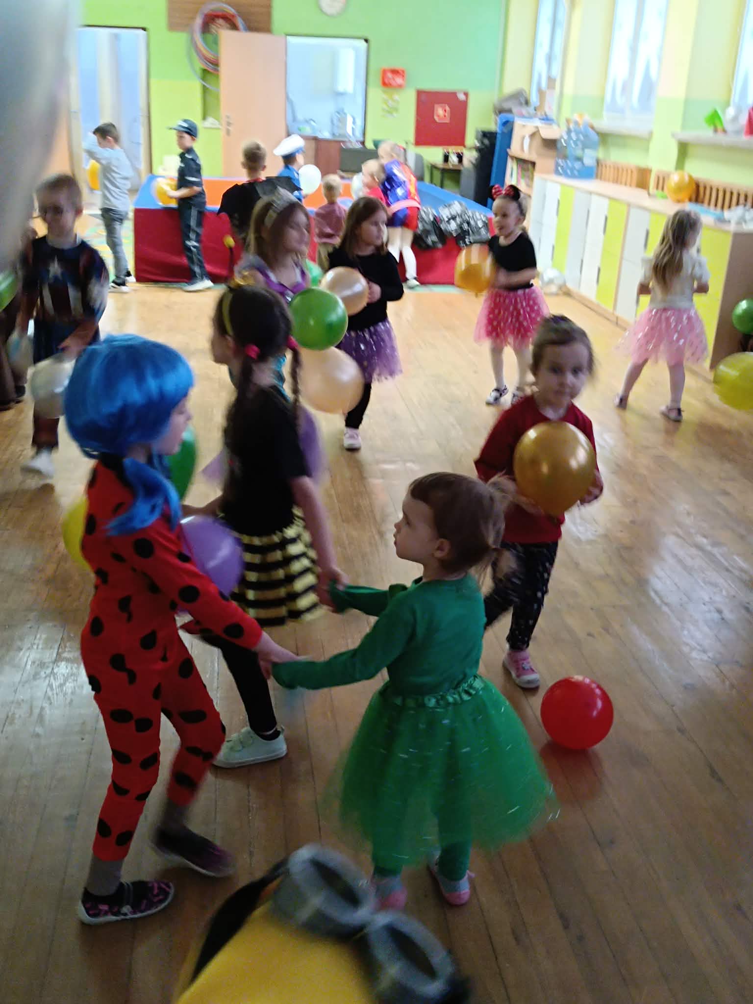 Dzieci przybyły na bal w przepięknych, kolorowych przebraniach. Wśród uczestników można było spotkać różne postacie z bajek, super - bohaterów, księżniczki, zwierzątka oraz wiele innych ciekawych i pomysłowych kreacji. Każdy strój był wyjątkowy i wzbudzał zachwyt.