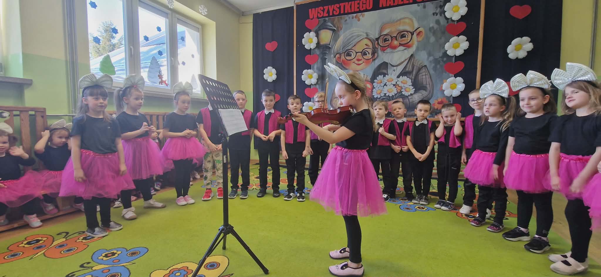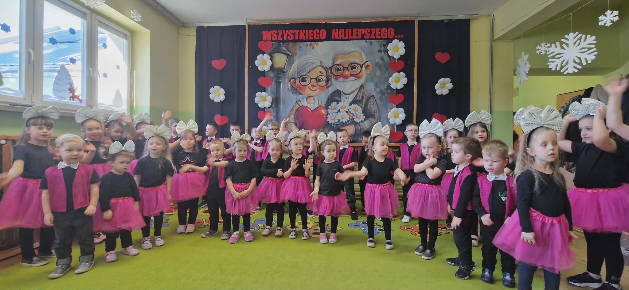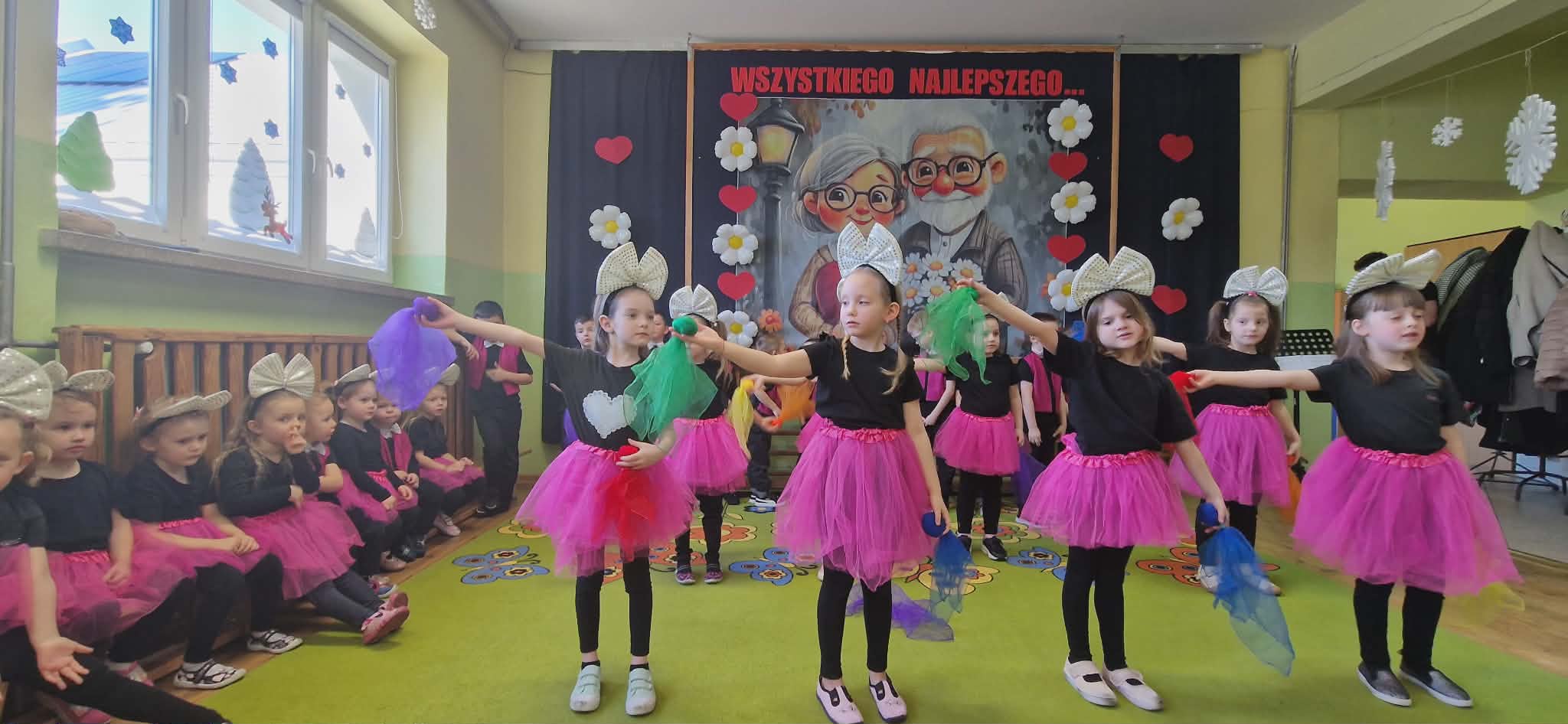 Następnie odbyła się część artystyczna. Dzieci w pięknych strojach prezentowały przygotowany program artystyczny, podczas którego recytowały wiersze z rekwizytami i śpiewały piosenki, wywołując wiele wzruszeń i radości wśród dziadków.