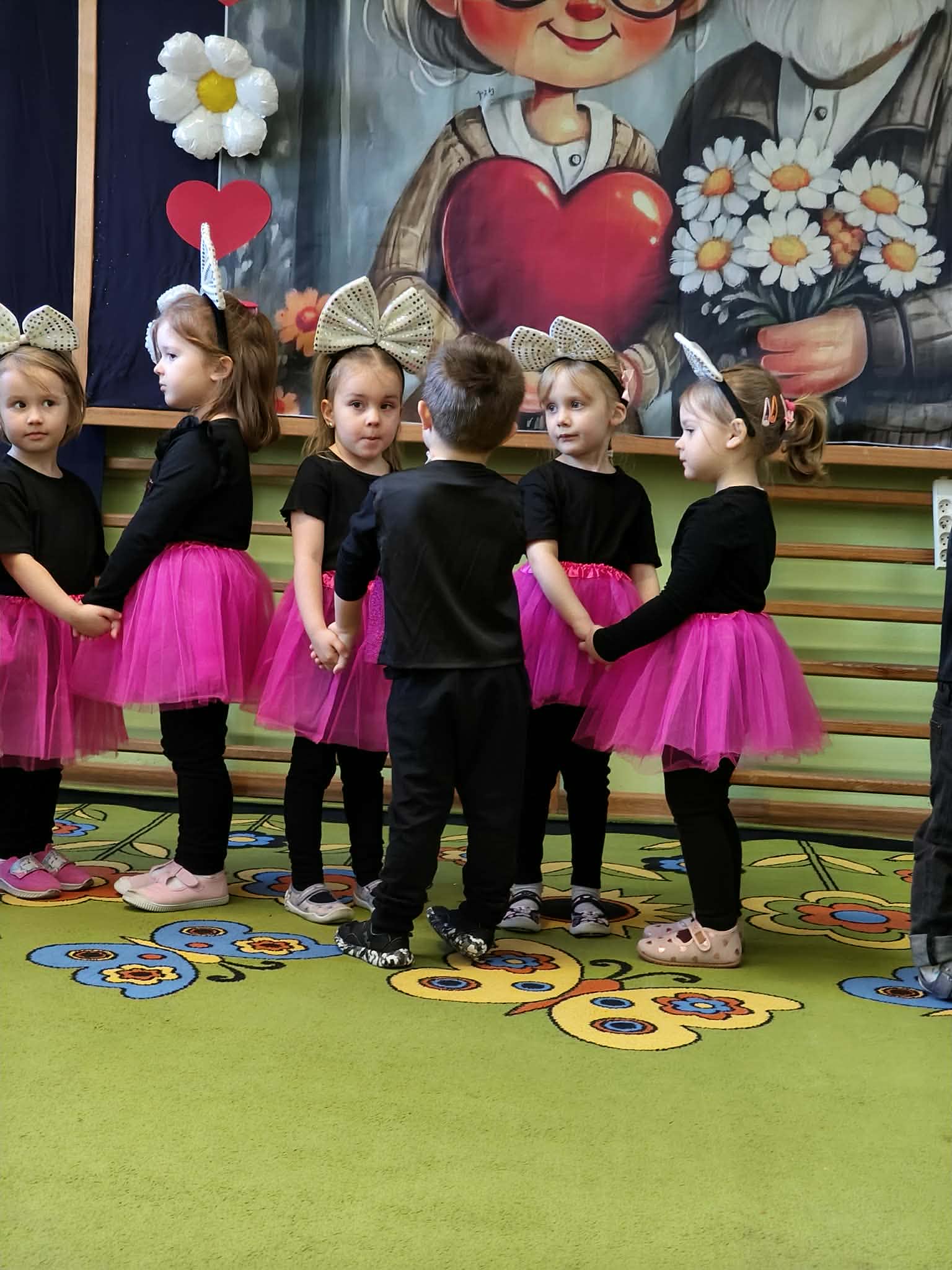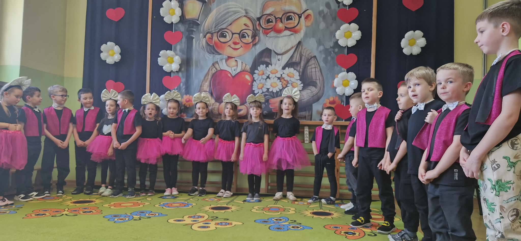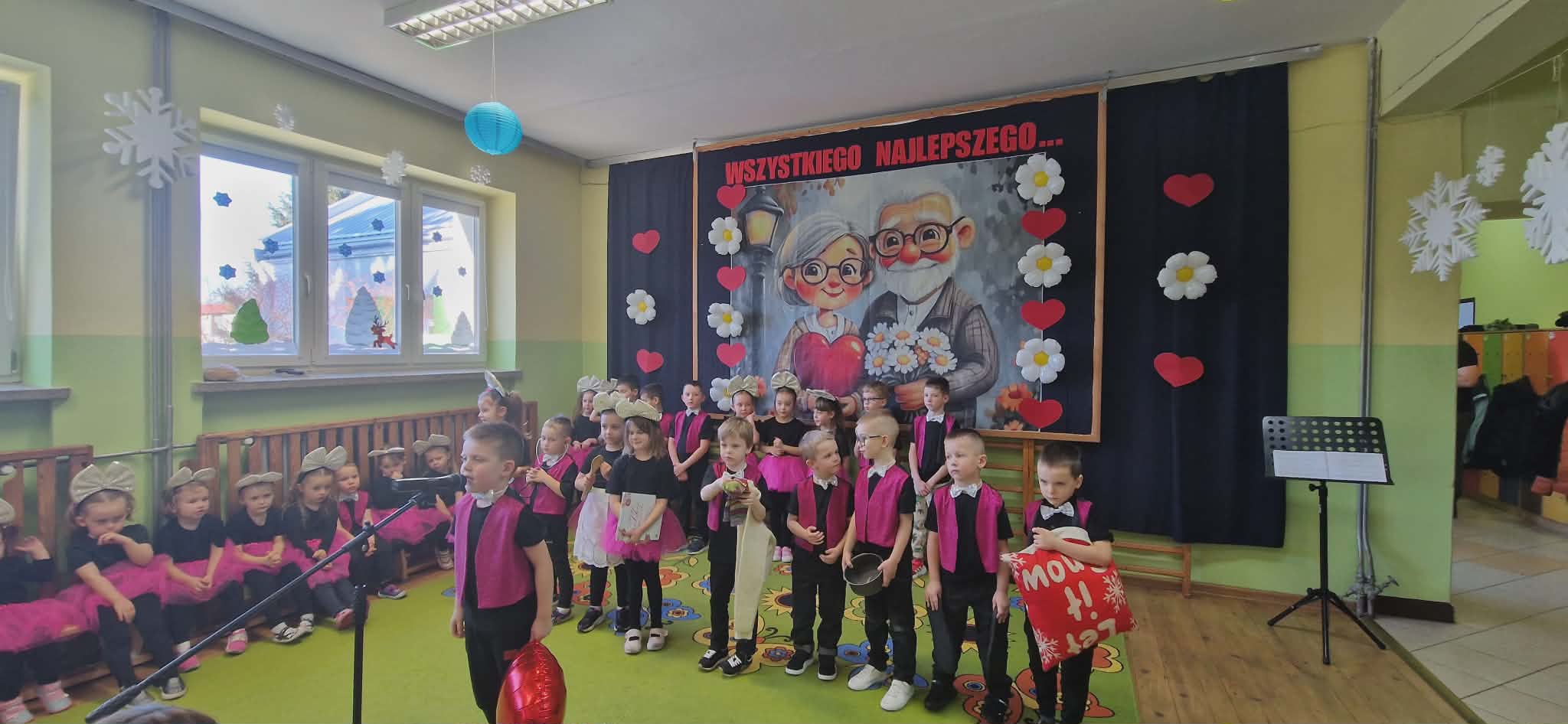 Następnie odbyła się część artystyczna. Dzieci w pięknych strojach prezentowały przygotowany program artystyczny, podczas którego recytowały wiersze z rekwizytami i śpiewały piosenki, wywołując wiele wzruszeń i radości wśród dziadków.