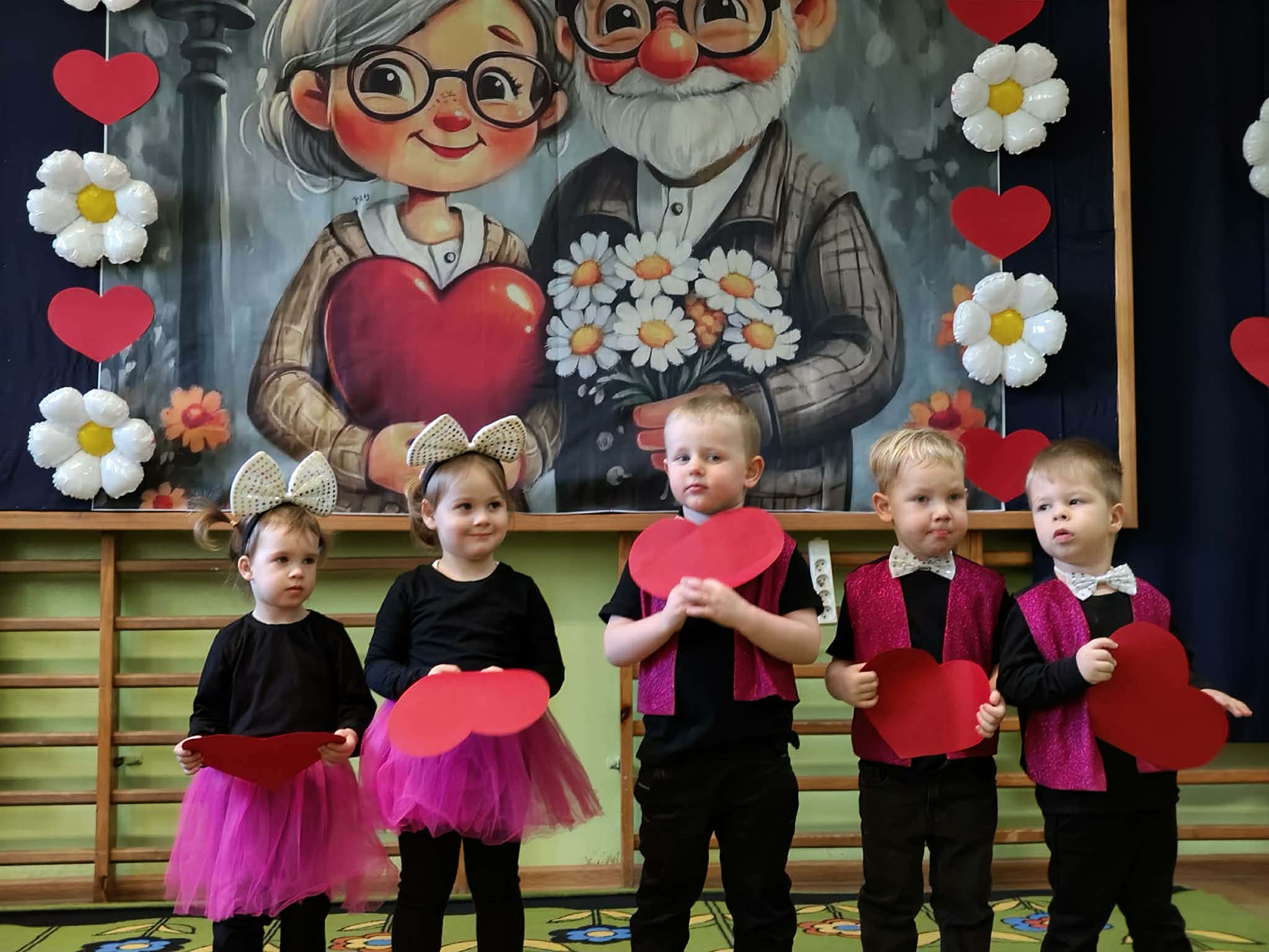 Na zakończenie dzieci wręczyły Babciom i Dziadkom upominki w kształcie serc, dziękując im za miłość i troskę. Po prezentach przyszedł czas na serdeczne rozmowy, uśmiechy, ciepłe uściski z wnuczętami i wspólne świętowanie.
