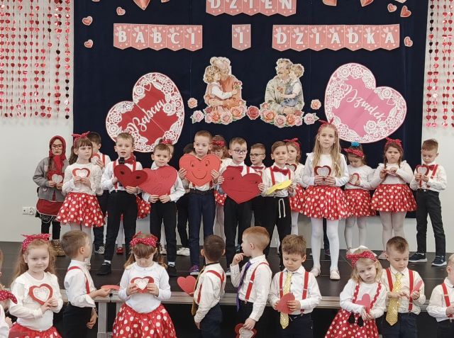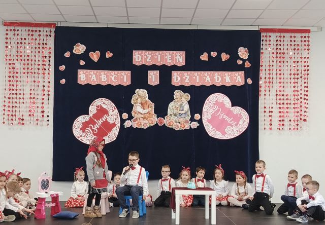 Dzieci przygotowały dla swoich ukochanych Babć i Dziadków niezwykły występ artystyczny. Na scenie nie zabrakło pięknych piosenek, wzruszających wierszyków oraz radosnych tańców. Mali artyści z ogromnym zaangażowaniem i przejęciem prezentowali swoje umiejętności, a duma i wzruszenie malowały się na twarzach zaproszonych gości.