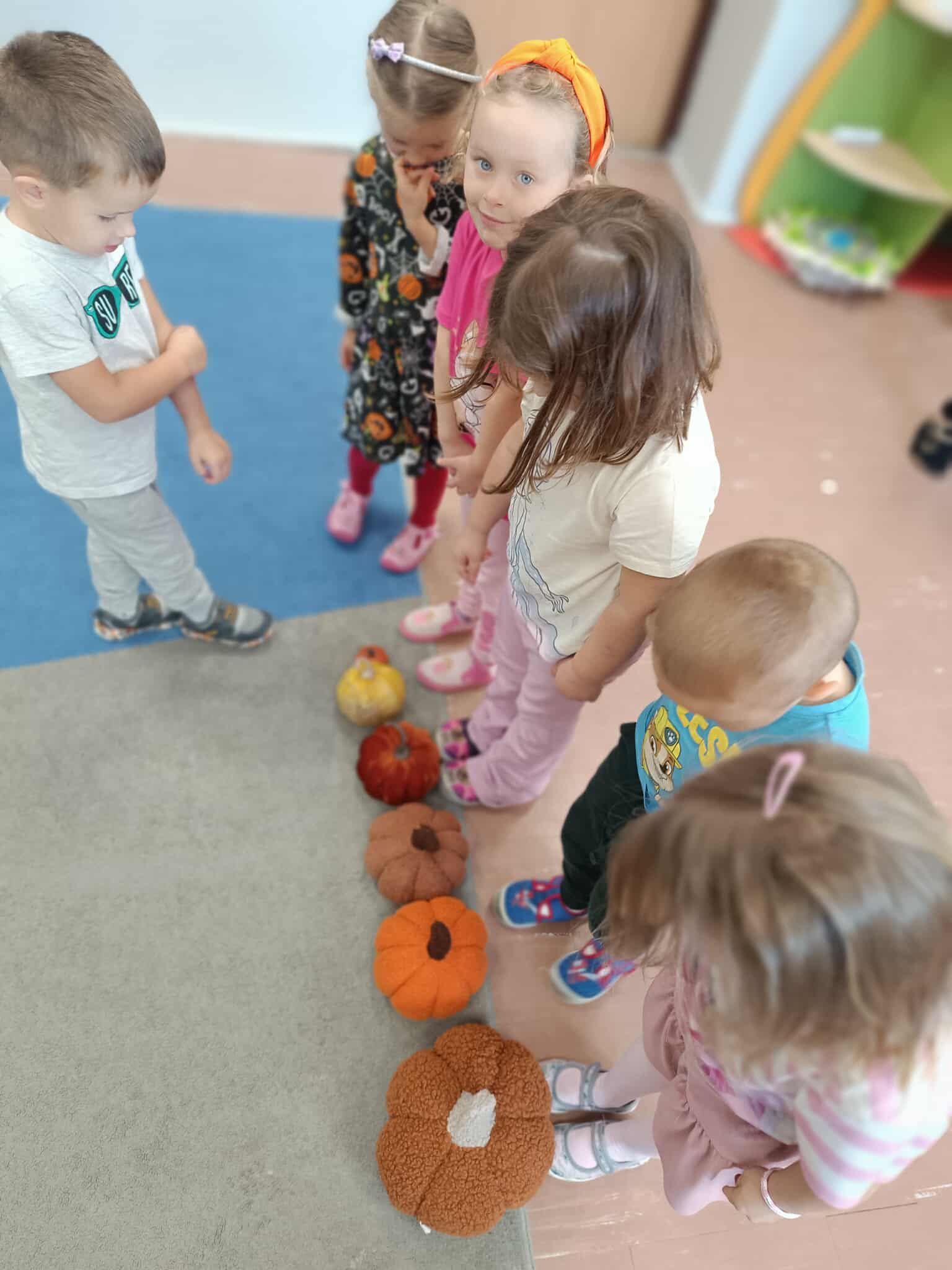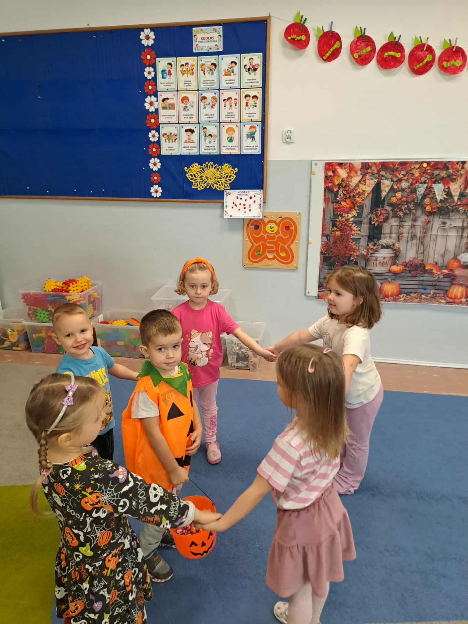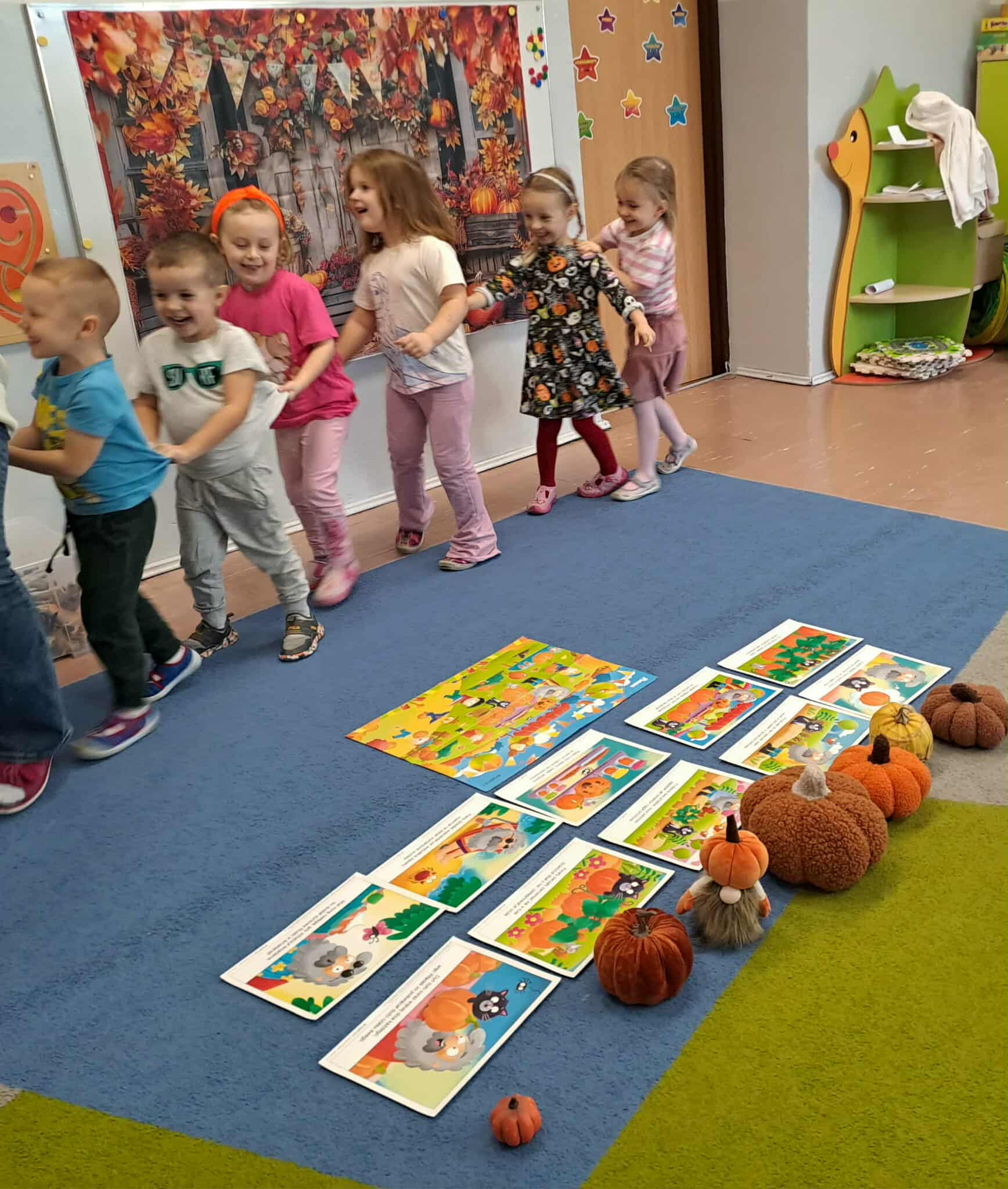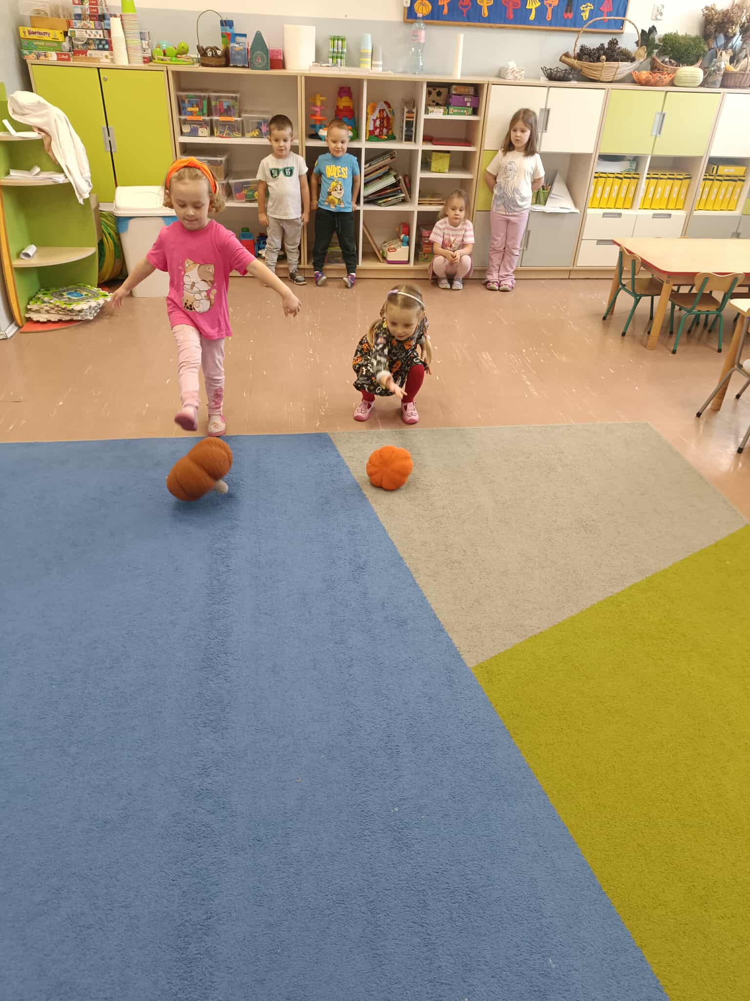 Przedszkolaki tańczyły przy jesiennych piosenkach i brały udział w „dyniowych konkurencjach” – toczeniu dyni, slalomie i zabawach ruchowych. W tym dniu wszystko kręciło się wokół dyni – od dekoracji, aż po małe eksperymenty i quizy.