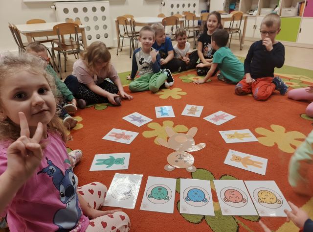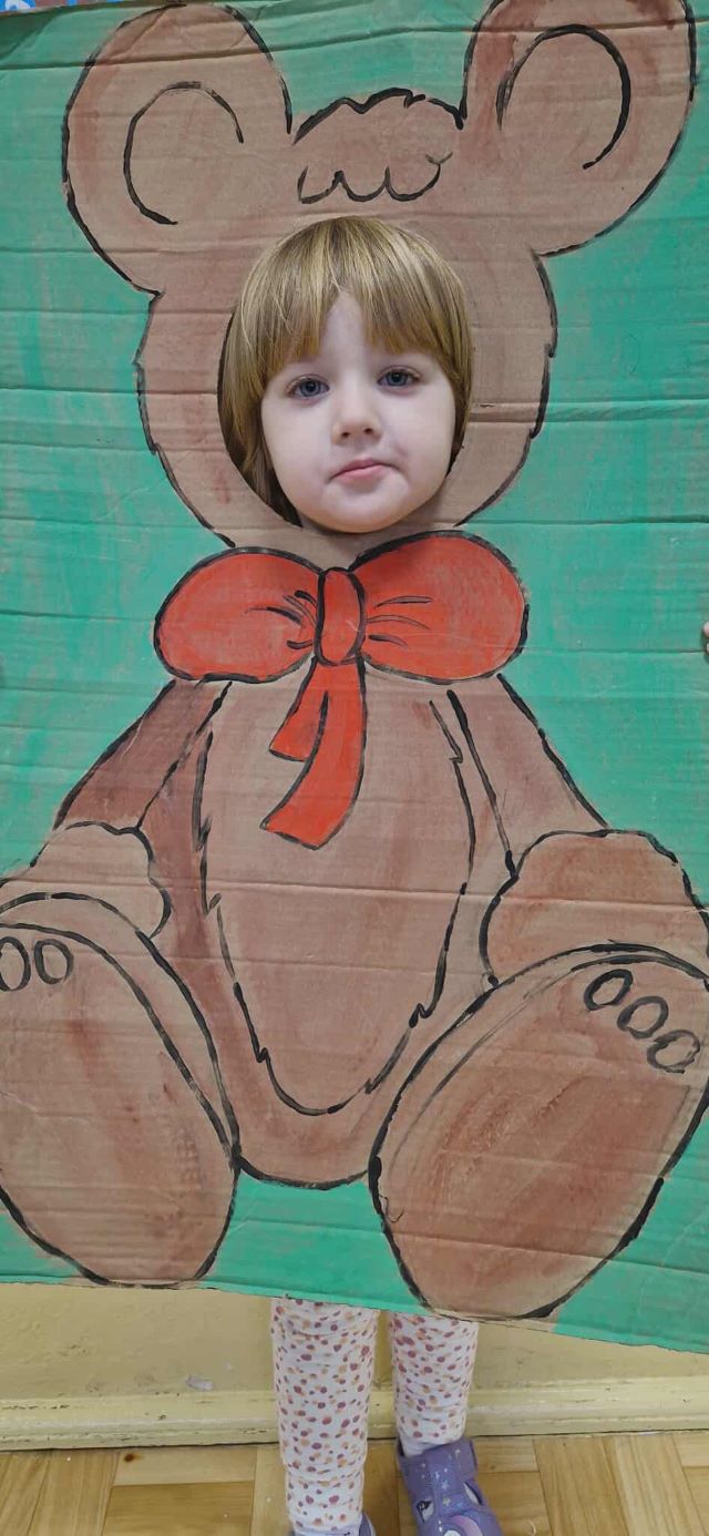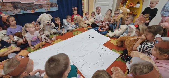 Świętowanie rozpoczęliśmy od obejrzenia ilustracji i wysłuchania historii o pluszowym misiu, dzięki której dzieci dowiedziały się, skąd wziął się pomysł na tworzenie pluszowych misiów i dlaczego stały się one tak wyjątkowymi maskotkami.
