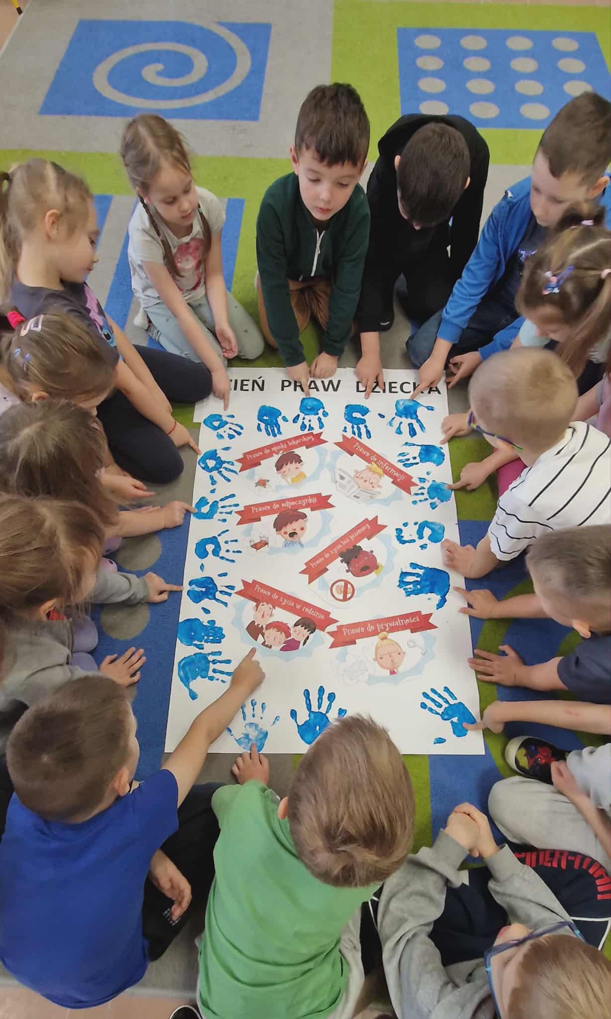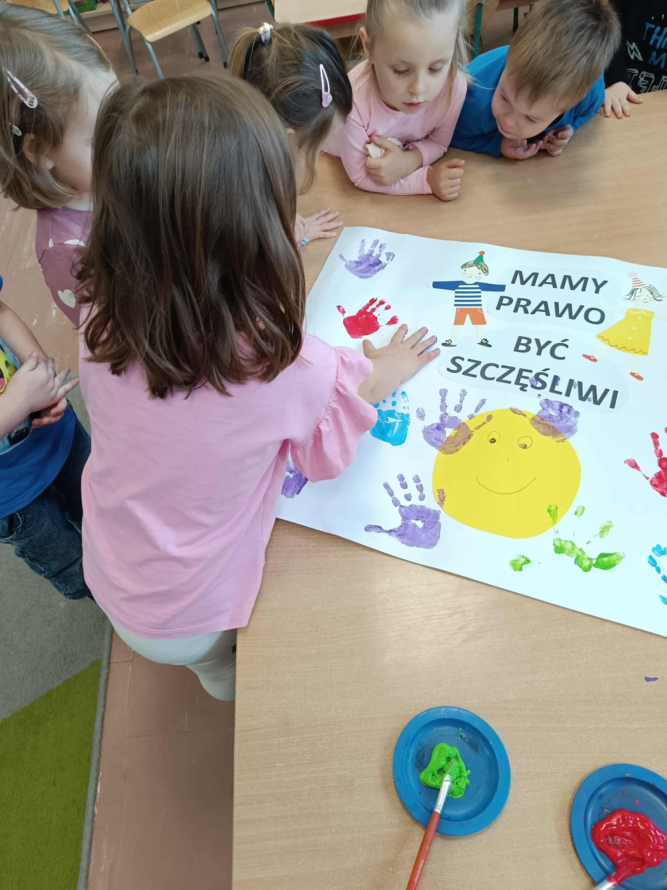 Ważnym elementem świętowania było również tworzenie plakatów o prawach dziecka. Każda grupa przygotowała kolorowe, pełne pomysłów prace, na których pojawiły się hasła i ilustracje przedstawiające najważniejsze prawa dzieci. Dzięki temu przedszkolaki mogły nie tylko utrwalić nową wiedzę, ale także wyrazić swoje emocje.