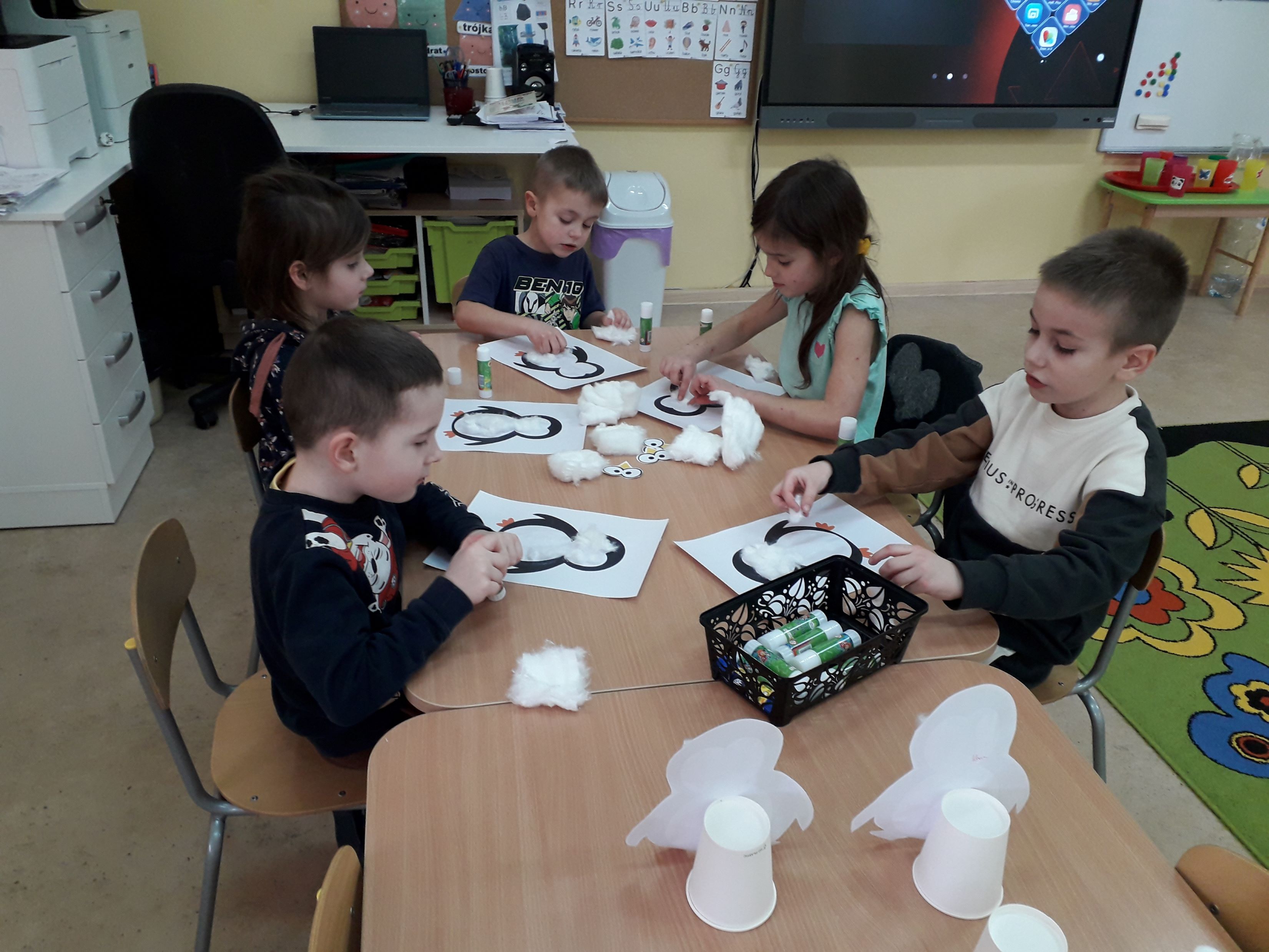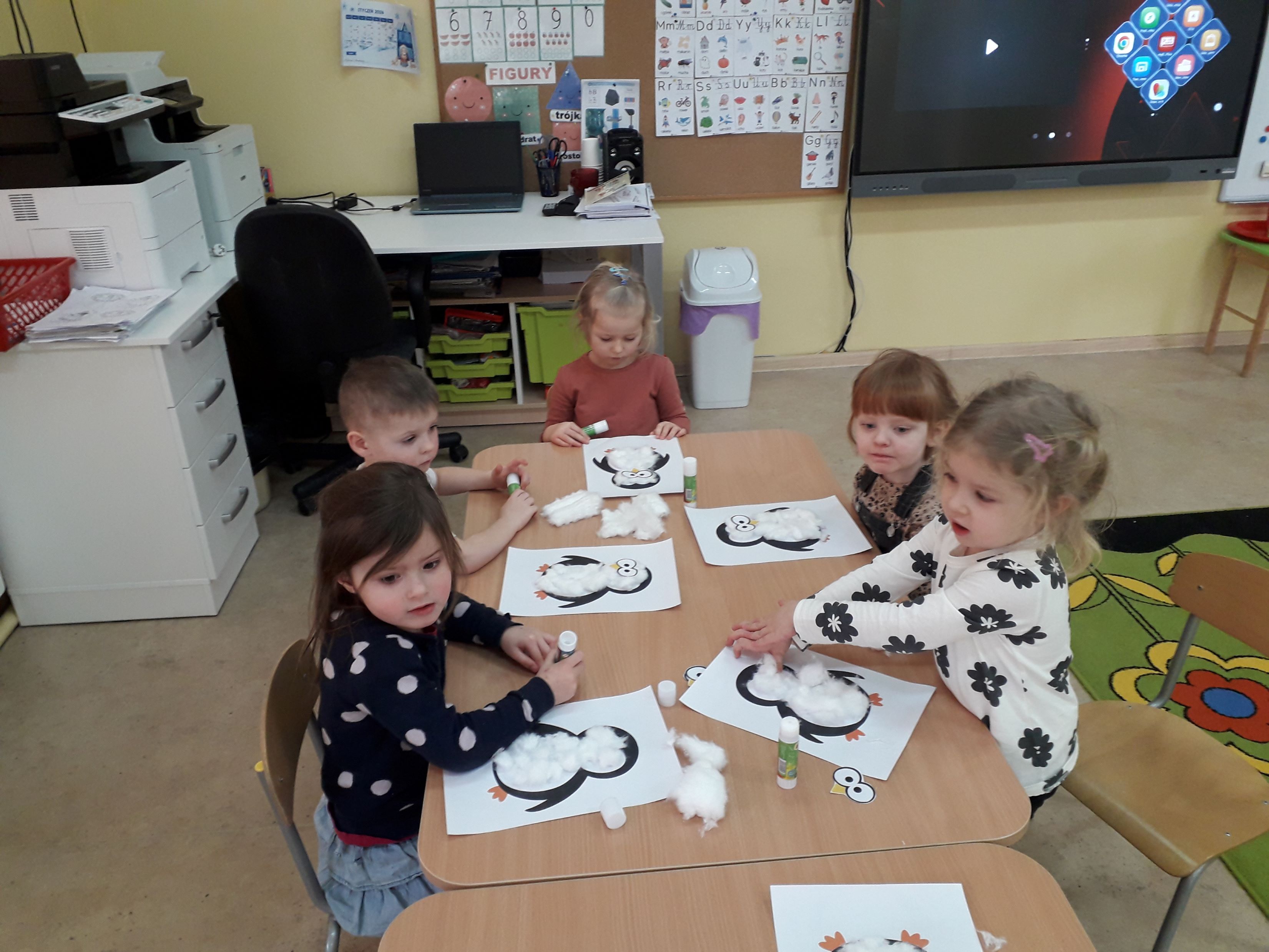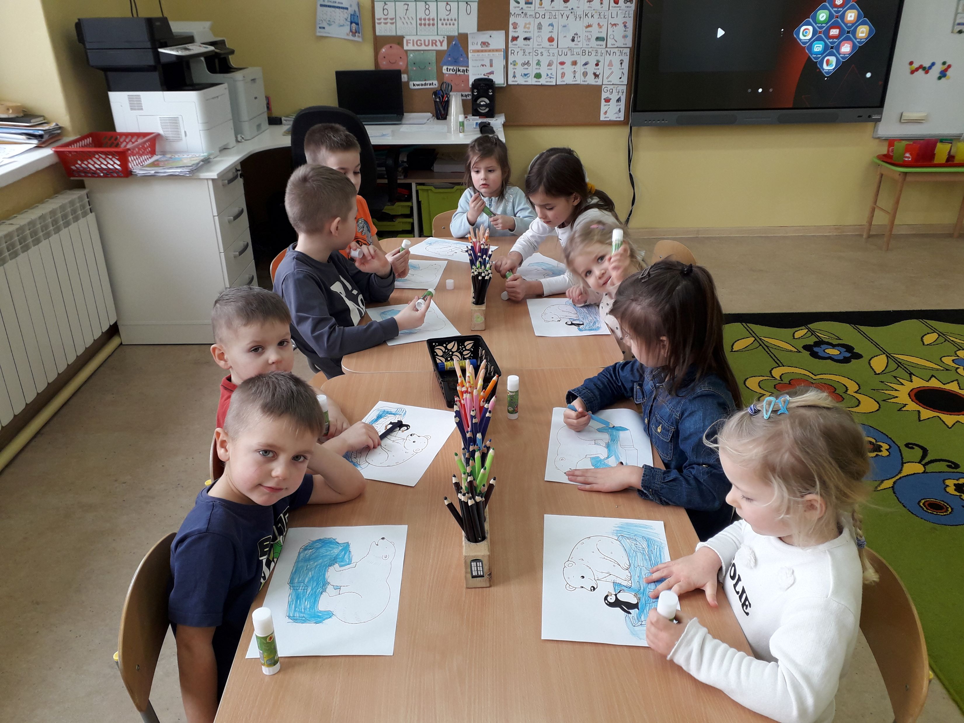 Rozmawialiśmy o zwierzętach zamieszkujących mroźne krainy, takich jak pingwiny, foki czy niedźwiedzie polarne. Dzieci z zainteresowaniem oglądały ilustracje oraz filmy edukacyjne, a także poznawały ciekawostki dotyczące życia w bardzo niskich temperaturach.