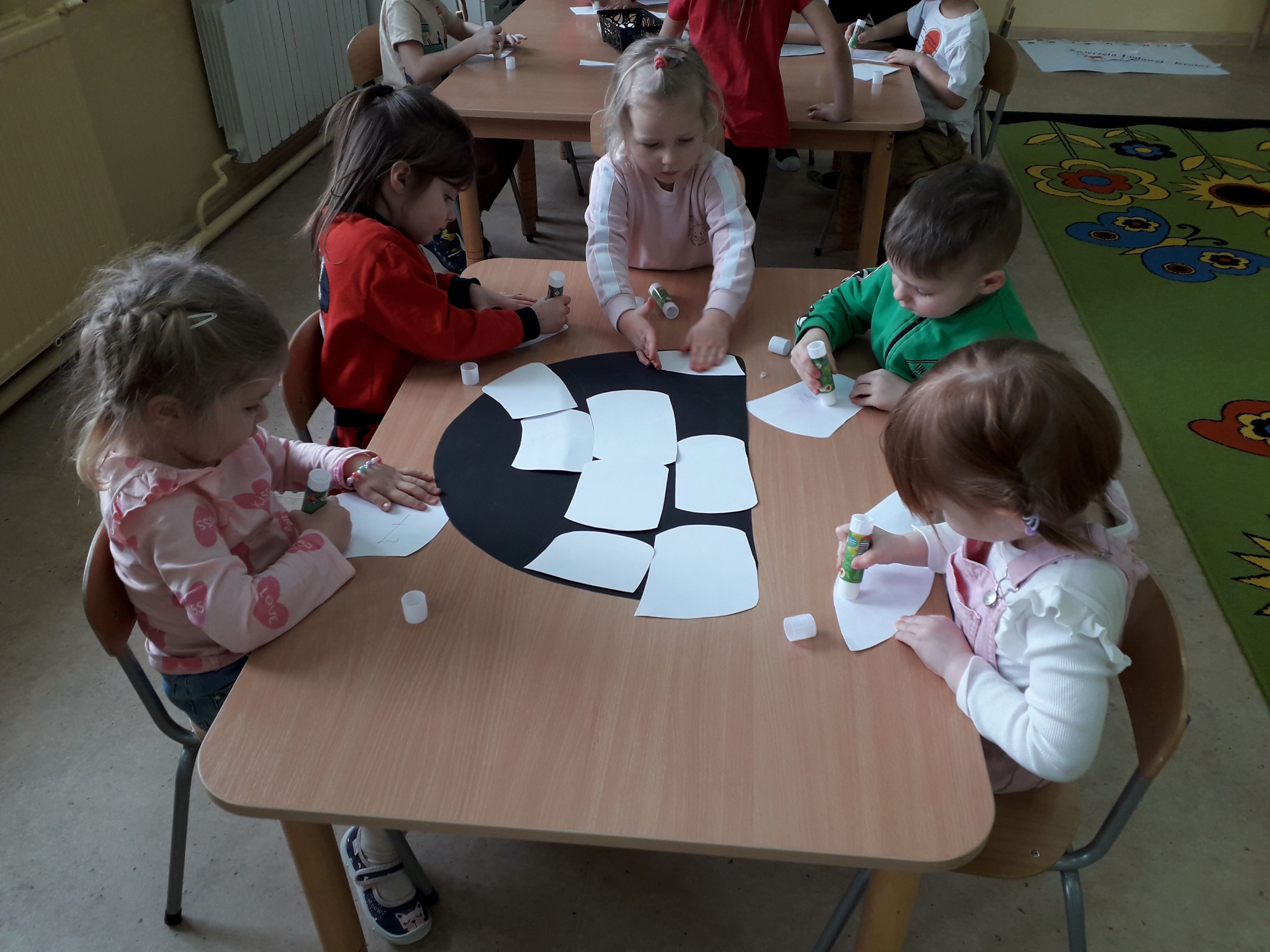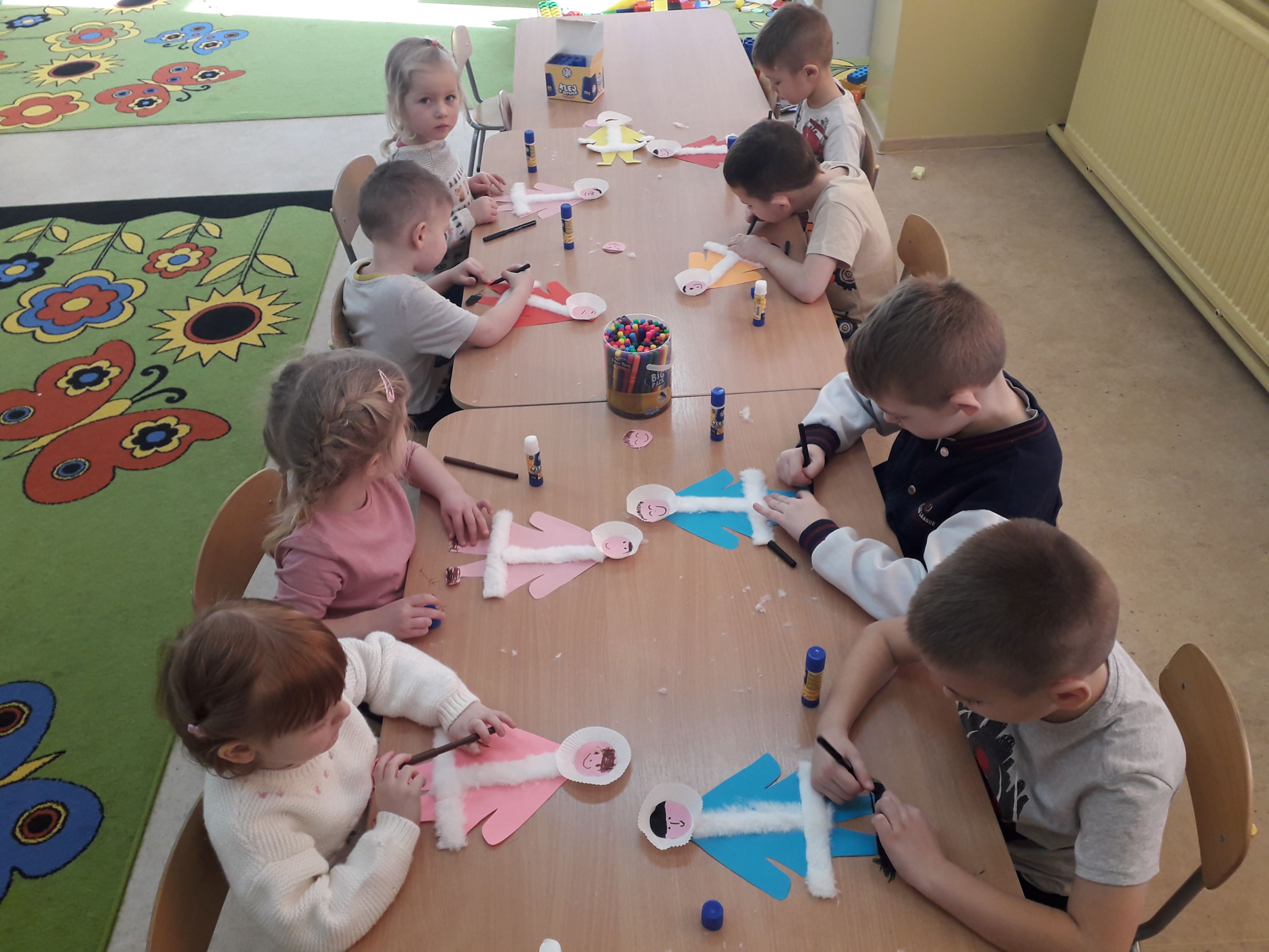 Nie zabrakło również aktywności plastycznych i sensorycznych. Przedszkolaki wykonały prace przedstawiające lodowe krajobrazy, pingwiny, niedźwiedzie oraz góry lodowe. Były także zabawy ruchowe inspirowane życiem zwierząt lodowej krainy, które wzbudziły wiele radości i ciekawości.
