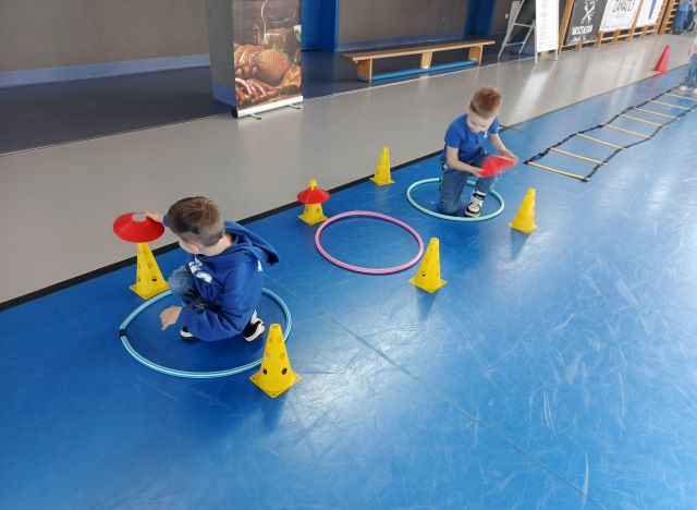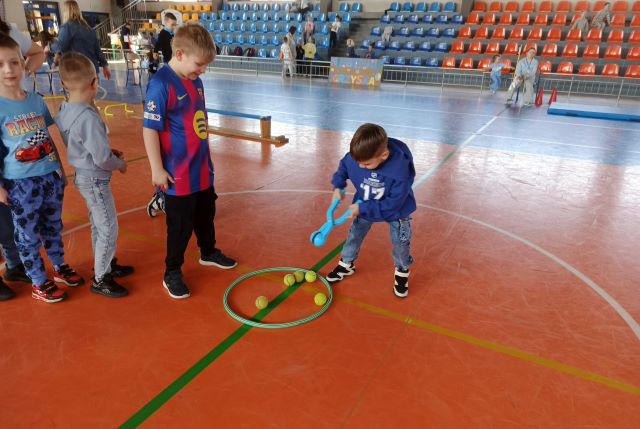 Przedszkolaki z ogromnym zaangażowaniem brały udział w przygotowanych konkurencjach sportowych. Na dzieci czekały różnorodne zadania ruchowe, dostosowane do ich wieku i możliwości, które nie tylko sprawiały wiele radości, ale także rozwijały sprawność fizyczną, współpracę w grupie oraz zdrową rywalizację.