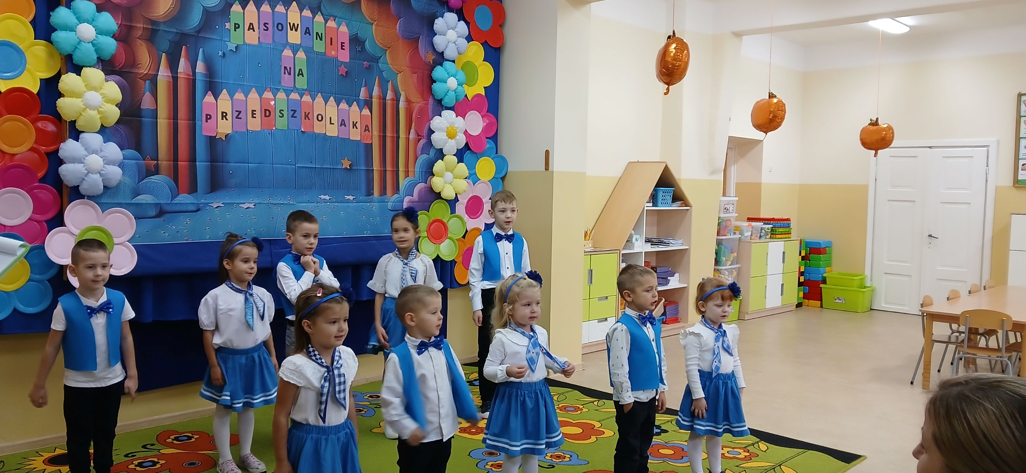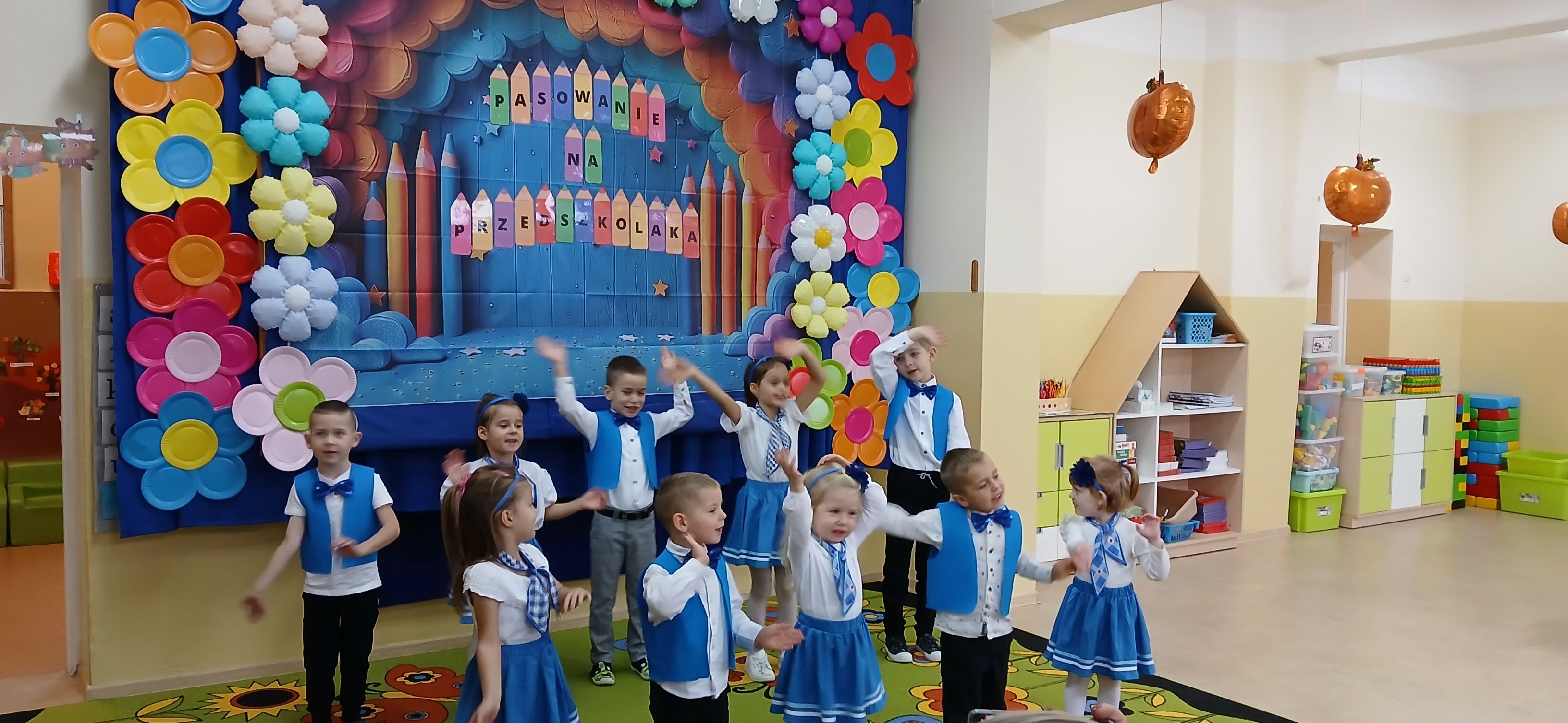 Uroczystość rozpoczęła się częścią artystyczną przygotowaną przez dzieci, które zaprezentowały piosenki, wierszyki oraz krótkie zabawy taneczne. Po występie każde dziecko zostało symbolicznie pasowane przez panią dyrektor dużą kredką, a następnie otrzymało pamiątkowy dyplom.