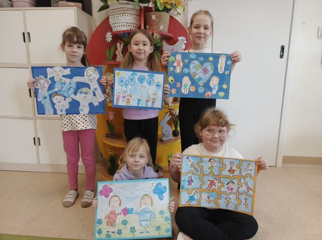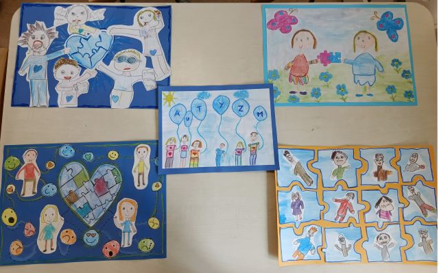 W naszym przedszkolu chętne przedszkolaki z wielkim zaangażowaniem przygotowały prace plastyczne na konkurs pt. „Autyzm – razem tworzymy całość” organizowanego w ramach obchodów Światowego Dnia Świadomości Autyzmu -2 kwietnia 2026r. zorganizowanego przez Fundację Pomerdało mi się i Powiat Poddębicki.