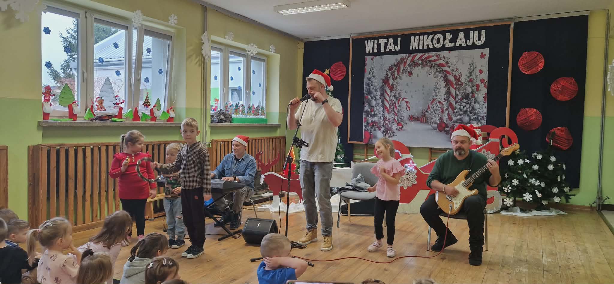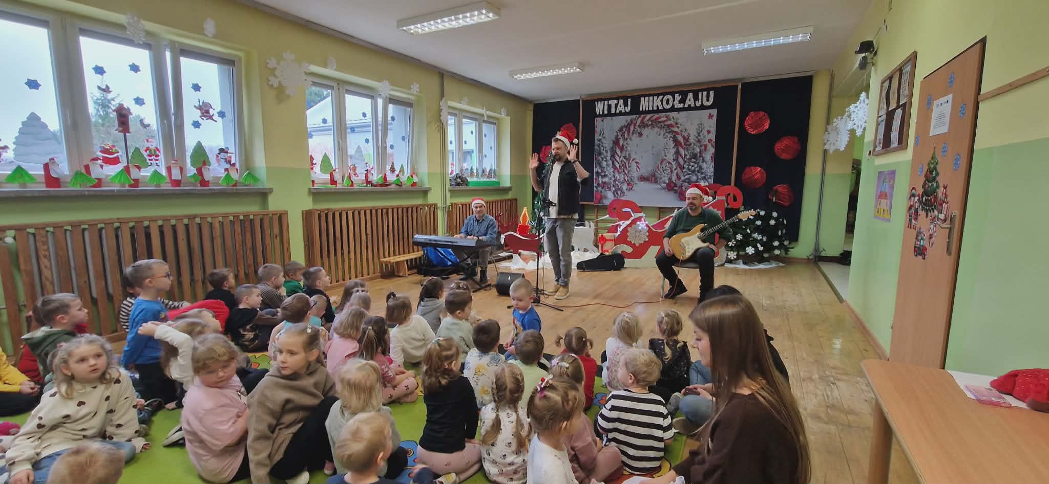 Dzieci uczestniczyły w świątecznej audycji muzycznej Akademii Pana Feliksa. Już od pierwszych chwil w sali panowała ciepła i magiczna atmosfera, a wszystko za sprawą zaproszonych muzyków, którzy przygotowali dla dzieci specjalny, bożonarodzeniowy program.