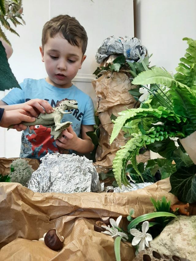 Podczas zajęć przedszkolaki poznały różne gatunki dinozaurów, dowiedziały się, czym się żywiły oraz jak wyglądał świat miliony lat temu. Dzieci oglądały ilustracje, książki edukacyjne oraz brały udział w rozmowach i ciekawostkach na temat życia dinozaurów.