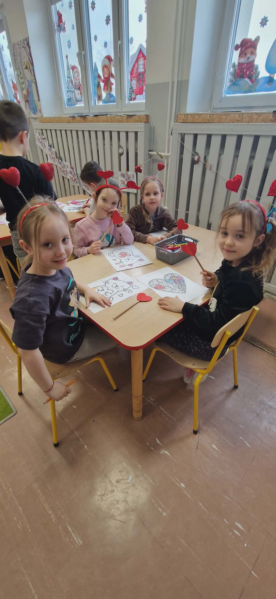 Nie zabrakło również twórczej aktywności. Przedszkolaki przygotowały walentynkowe prace plastyczne, kartki dla przyjaciół. Podczas zajęć rozwijały swoją wyobraźnię i zdolności manualne.