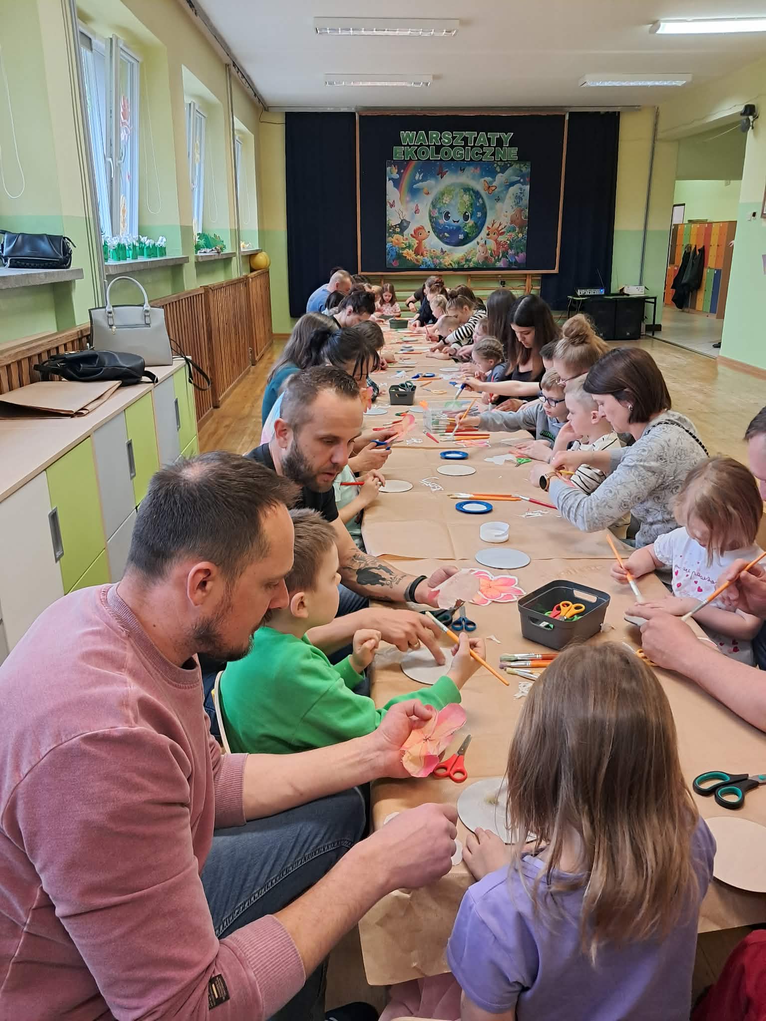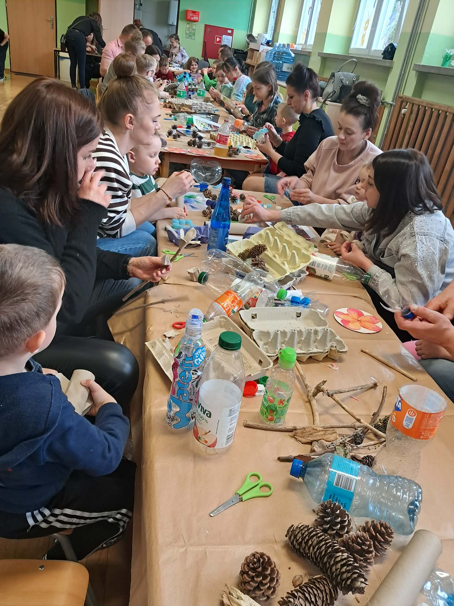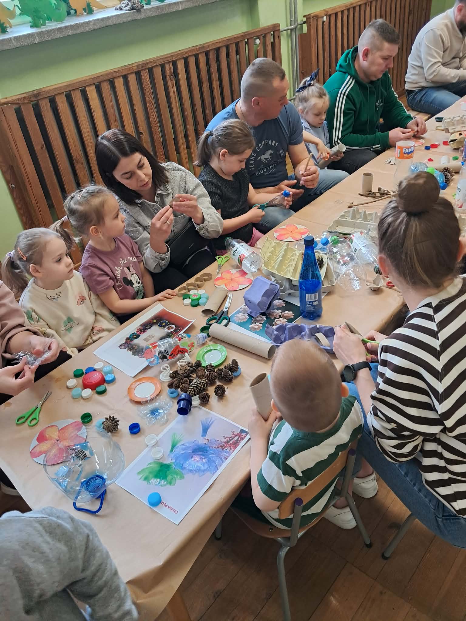 Wspólna praca przyniosła wszystkim wiele radości. Dzieci z ogromnym zaangażowaniem tworzyły swoje prace, a rodzice chętnie pomagali i dzielili się pomysłami. Warsztaty pokazały, że z pozornie niepotrzebnych materiałów można stworzyć coś pięknego i jednocześnie zadbać o naszą planetę.